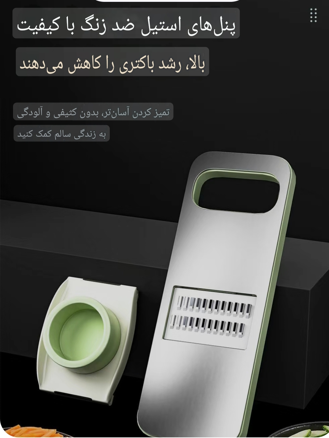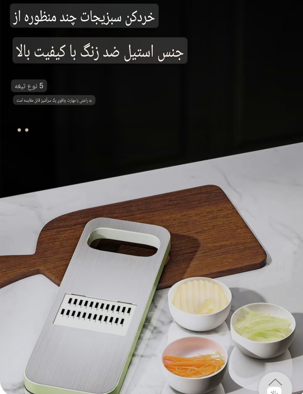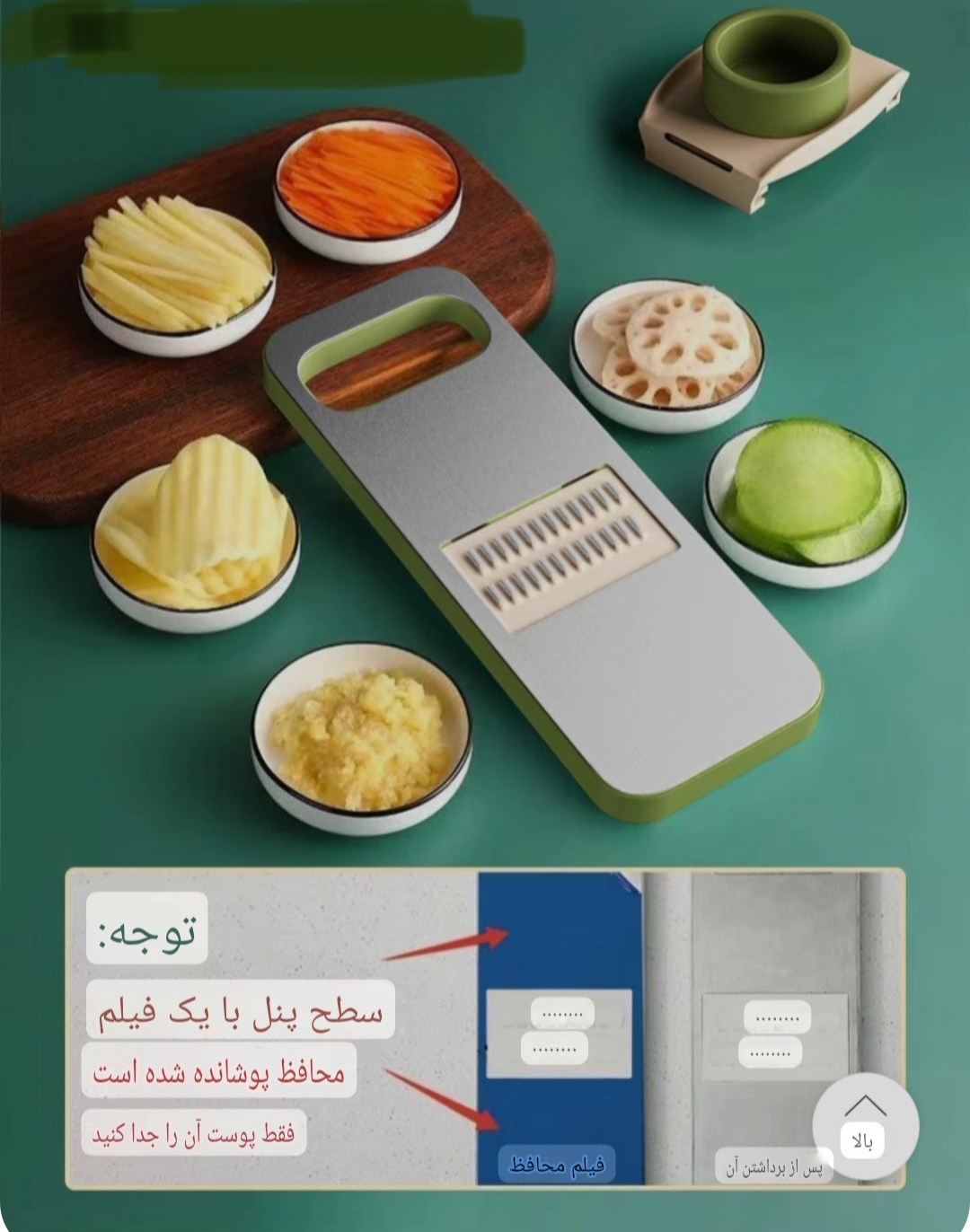 رنده سبزیجات با 6عدد تیغه استیل ضد زنگ 304وارداتی دارای محافظ دست رشد باکتری در حد بسیار زیادی کاهش میی